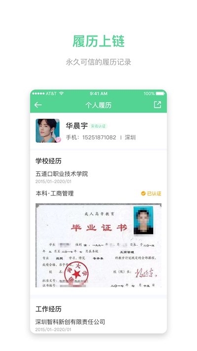 以区块链技术为个人履历提供资料来源与内容认证核实。