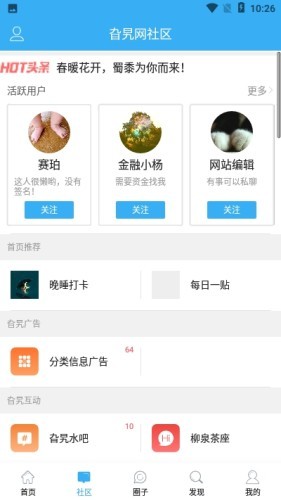 【同城活动,圈子尽兴玩】1、你的圈子你做主,喜欢什么关注什么,总有一个圈子适合你。