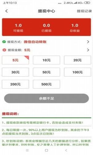 【快捷提现】满1元即可提现。申请线上赚钱提现,坐等24小时现金到账。