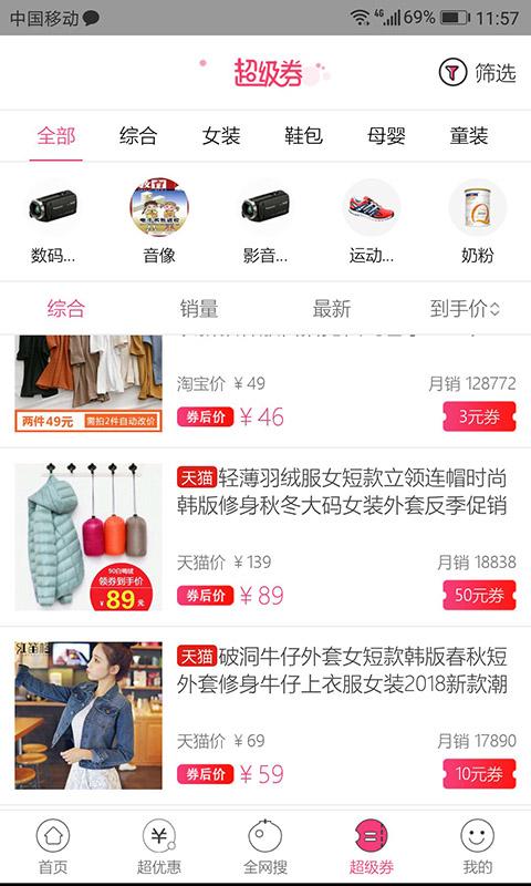 4、APP内输入关键词搜商品,找到的商品都有券。