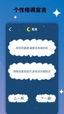 个性签名说说app有唯美诗意、幸福情侣、伤感分手、个性霸气、名言警句等内容,总能找到你想用的。