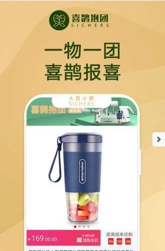 用户可在线上购买优质优惠商品,通过喜鹊抱团参加团购活动。