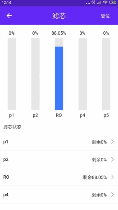 通过输入指定的设备id绑定已安装设备。查看设备的用水量、净化前、净化后的ppm值等信息,显示累计使用时长或流量。