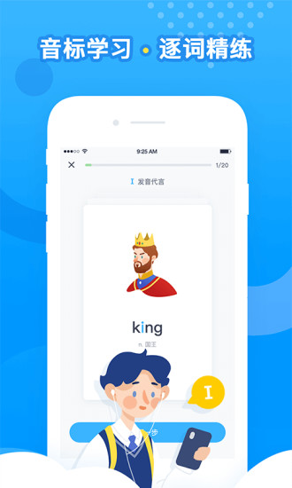 音标学习:48个国际音标闯关式学习,外教真人发音,动画教学,音素级的智能评测。