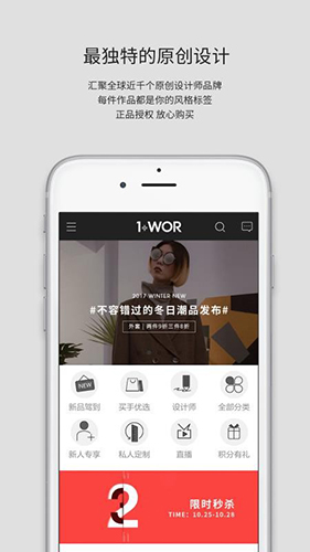 衣全球1WOR是一款原创设计服装品牌购买软件,这里有超多原创设计师的作品,用户可以选择自己喜欢的风格进行购买,每个产品都保证了质量,有独特的设计,让用户再也不会撞衫,个性穿着,从原创穿起,快来下载购买吧!