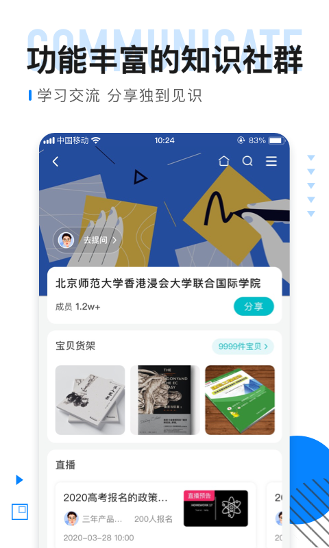 互知圈app是一款移动学习软件,互知圈app有丰富的知识资源和专属的百万级粉丝私密社群,可以分享发布知识内容,发布视频课程,让用户们互相交流知识内容,互知圈app可以随时随地的学习知识,给用户提供非常便捷的知识学习交流平台。