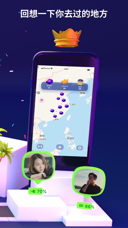 2、足迹可以记录自己都去过什么地方,还可以和朋友比比谁去过的地方多。