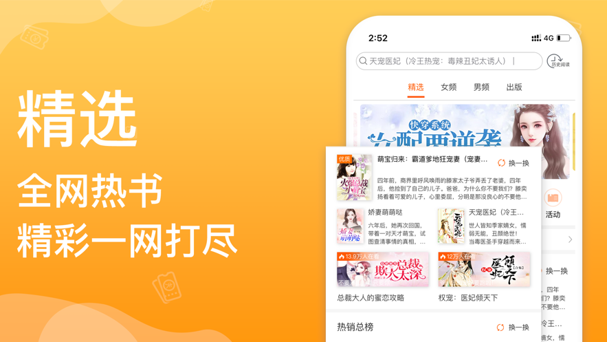 1.都市、言情、玄幻、悬疑、穿越重生,甄选海量畅销、好评书籍,涵盖所有分类,让精彩触手可得。