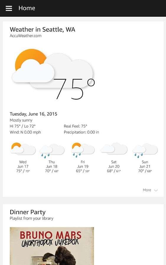 alexa是一款智能的音乐的软件,能够联结我们的音响的加强跟我们的手机的联动的,保持我们对音响更好的进行各种的控制,我们可以从这个软件里面获取到很多的内容,我们听音乐看各种的购物的清单,里面各种的新闻进行更新的,适合你所有的习惯的。