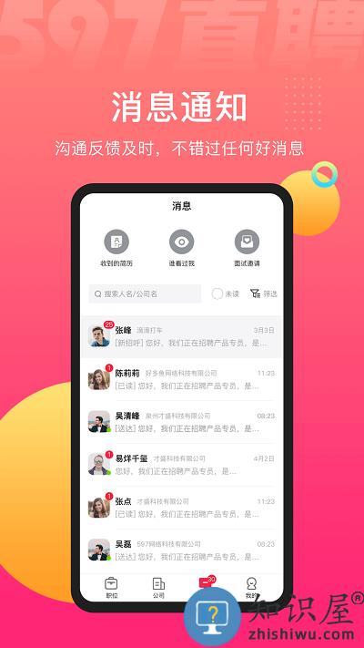 4、通过597直聘app直接与老板进行沟通,微聊或及时的电话联系;