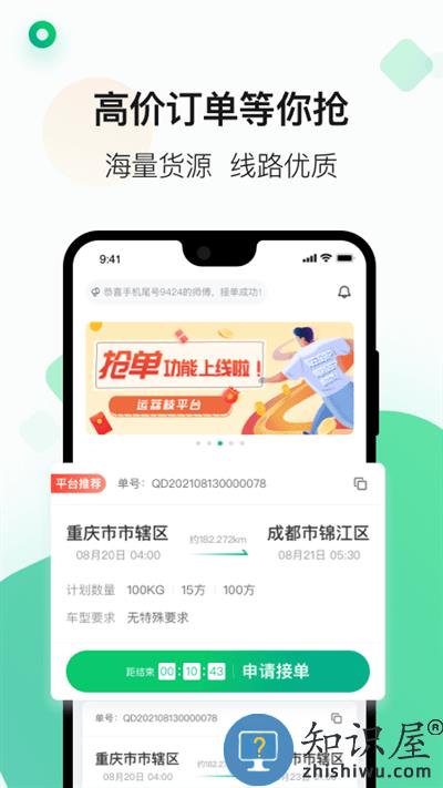 1.提供司机在线接单,在线查看订单始发目的地,及时高效完成货物配送。