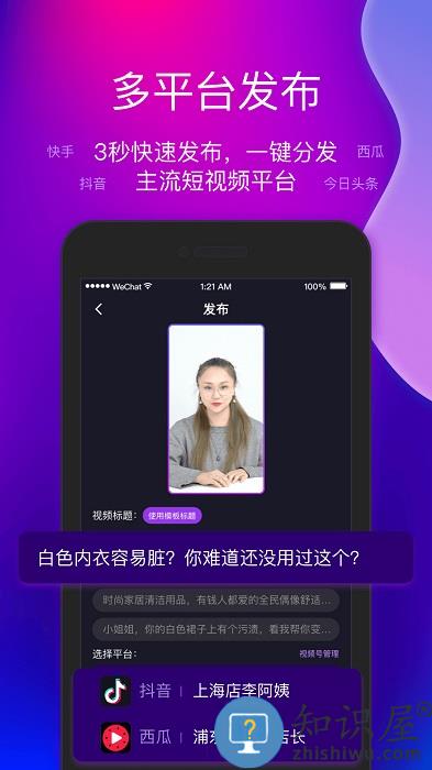 通过软件3秒快速发布,一键分发主流短视频平台!享受一机在手,转赞评全有的极致快感!每天都可以看到粉丝和你的互动情况!