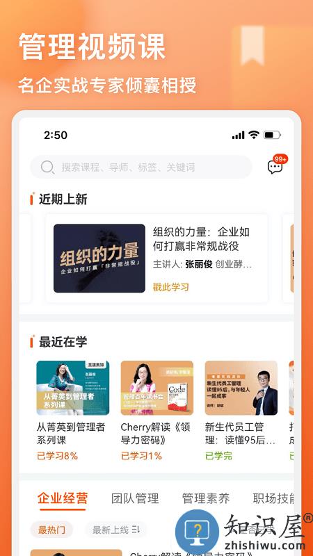 管用app是一个企业学习软件,软件中有很多创业相关的资讯书籍以及知识点分享给大家,还有管理方面的视频课程。可以让用户在这里根据自己的需求来在线学习,可以帮助企业单位解决众多管理方面的问题,让团队更具凝聚力才能发挥更大的价值。