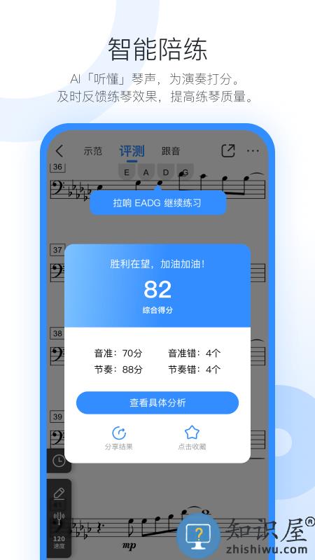 练习该乐曲。用户弹奏,app 会识别琴声,app「跟上」用户的弹奏进度。