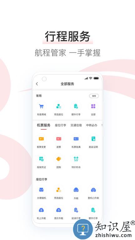 2、出行管家、特价机票、办理乘机、航班动态、凤凰知音、自助改期等简便操作随时随心,贴身服务尽善尽美。还有中、英文双语可供选择。