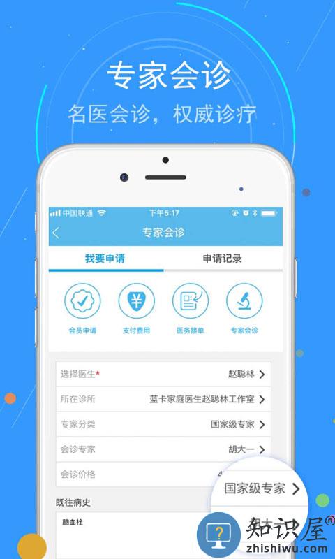 支持远程会诊,蓝卡家庭医生、蓝卡线上专家团队、全国着名专家及各大三甲医院的专家组成医疗团队,由专家本人亲自会诊