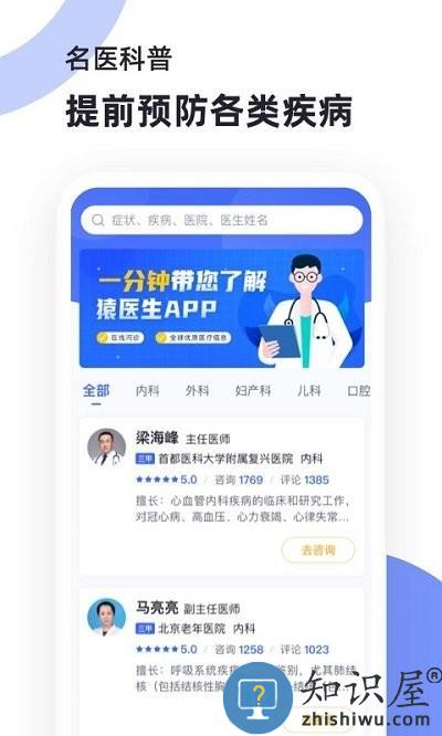 猿医生app是一款非常实用的医疗服务软件,软件内为用户提供海量的医疗知识,用户可以在这里了解各种各样健康医疗知识,帮助用户提高健康知识,还能让用户可以和医生进行在线交流,非常的实用!