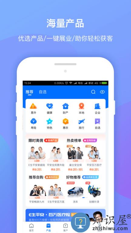 海量客户,轻松创富,保险移动交易平台。中国领先的互联网保险交易平台,您专属的线上展业秀场,专注为您实现创业梦想。它是中国平安旗下移动在线保险创富平台。依托于平安综合金融优势,为您提供全面丰富的保险产品和细致体贴的展业专家支持。借助移动互联网技术,打破了传统展业的时间空间限制,为您提供在线投保、客户管理、实时结算等线上展业流程,让您随时为客户服务,实现自身资源变现。