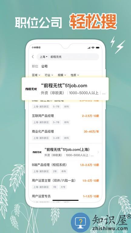 前程无忧51job是一个拥有很多工作的平台,丰富的职位信息覆盖了各个行业、各个岗位,每周有超过5,000万份简历通过51job发送到招聘企业。给求职者提供了更多的选择,许多知名公司、世界500强企业都在51job招聘人才、发布职位。