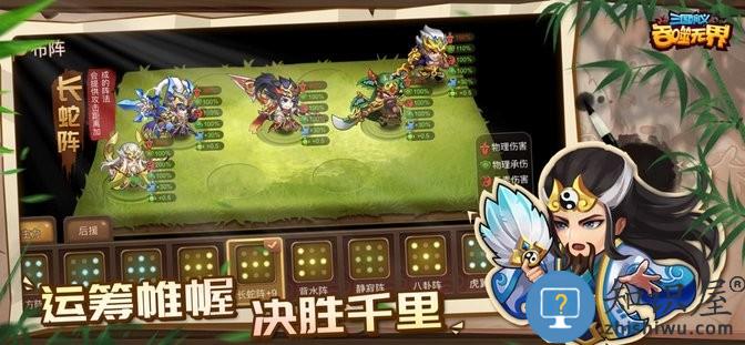 经典回合制战斗,敌方无论在阵型、武器、还是护甲类型都会存在弱点。根据敌方弱点选择合适的上阵武将,变换合适的阵型以更好的应对敌方。抛开无脑操作,阵法策略,尽显智慧,最终天下属于智者!