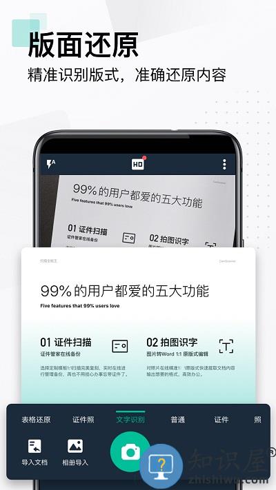 CamScanner扫描全能王,将智能手机变成随身携带的扫描仪。方便快捷地记录管理您的各种文档,收据,笔记和白板讨论等。并通过智慧精准的图像裁剪和图像增强演算法,2265保证您扫描的内容清晰可读。