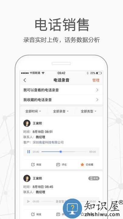 PC端一键拨号、电话录音、电话数据统计、电话排行榜、客户跟进计划,让CRM与电话机完美结合,帮助企业掌握员工通话数据,优化沟通话术,提升销售业绩