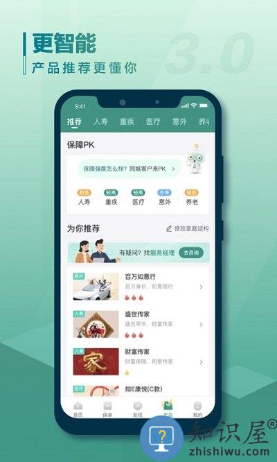 2.产品:智能推荐更适合您的保险产品,一键联系服务经理