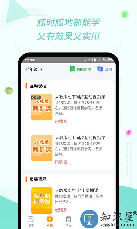1)课本讲解:按单元每小节精讲课本,先看视频再即学即练;