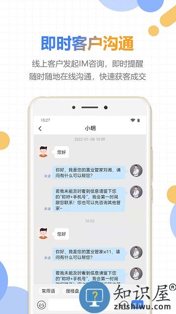 2、IM聊天:支持经纪人与客户在线即时沟通,快速搞定客户。
