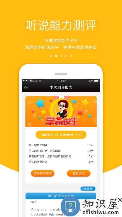 运用世界先进的智能语音分析技术,从准确度、流利度、完整度三个维度评价学生的口语发音。