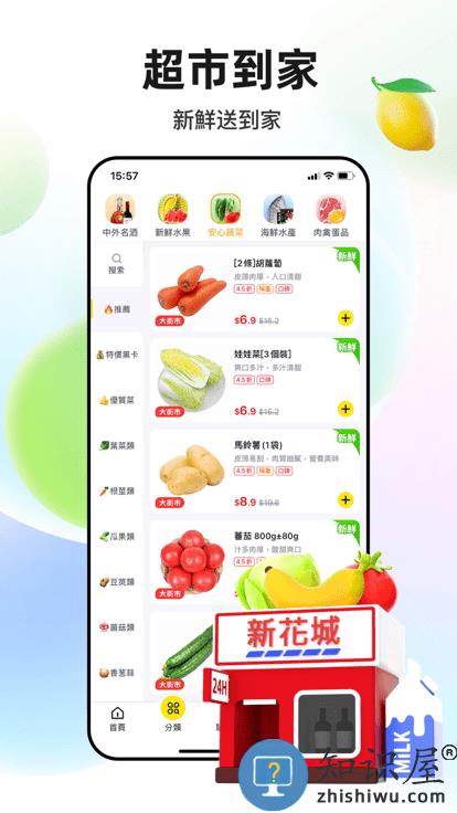 1.超多生鲜水果,蔬菜,肉禽等都有选择,你可以购物更方便。