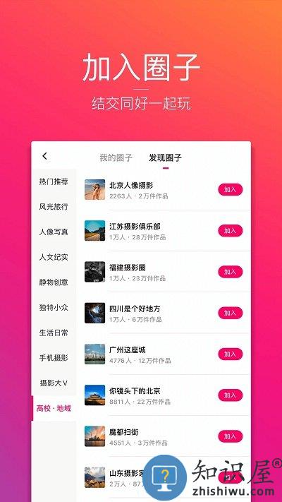 - 圈子升级:来地域圈子,和老乡一起玩摄影。