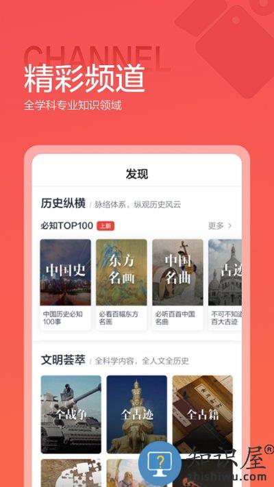 1. 新增必知top100频道,让你在最短时间成为历史行家。