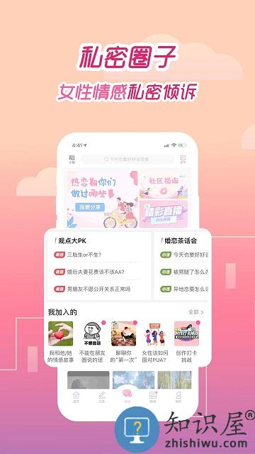 更有1.2亿姐妹在这里分享他们的经期护理窍门、成功备孕经验、两性态度和健康生活瞬间,热情互帮互助、答疑解惑。那些不好意思问别人的羞羞问题,在这里可以安心地向姐妹们提问,收获最中肯有用的经验和建议哟!