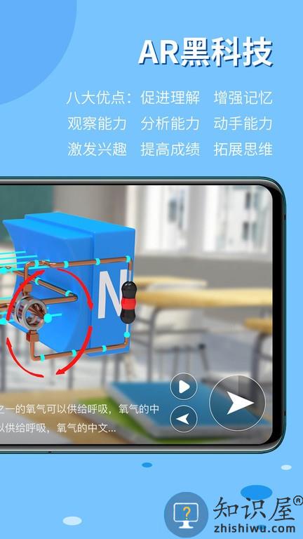 一个基于AR增强现实技术,面向青少年的学习资源平台。平台包含数学、物理、化学、地理、生物、科普等初中阶段数百个知识点。结合初中课本与教学大纲,通过AR技术,将多位名师总结出来的抽象、难懂的知识点,进行三维原理演示、语音讲解、操作互动、考试评测等多元化一对一解析。