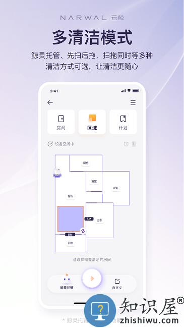 云鲸智能app是一款智能家居类的控制软件,可以连接智能扫地机器人使用,有超级多丰富好玩的功能,让你的扫地机器人为你花样打扫,设置好清洁的区域和路线,以及禁止清理的区域,让你的地面可以保持干净,清理环境方便了很多哦!