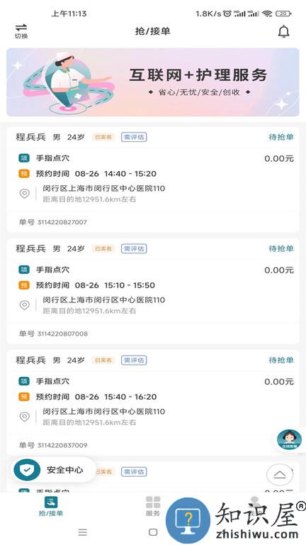 6、订单获取,护士自行获取系统订单信息。