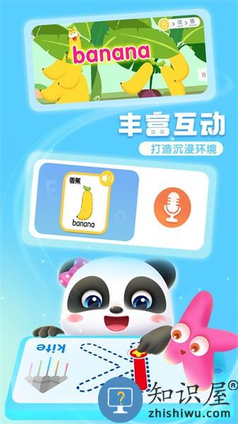 设置“认练说写测”5个字母启蒙步骤,引导宝宝听儿歌认字母、玩互动记字母、开口念单词等,辨别26个字母的外形和发音,牢记书写顺序。