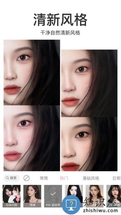 杂志风、ins风、日韩风、可盐、可甜多种美妆任你选择!更有百变姿势,一键Get拍照姿势+美妆!
