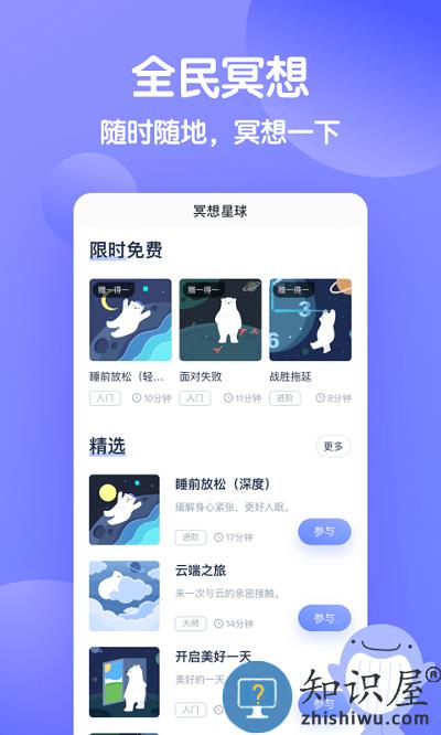 心理专业团队与海内外专家联手打造冥想练习,帮助收获平静与快乐。