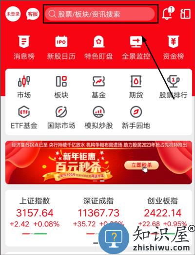 点击首页上方【搜索栏】查找;