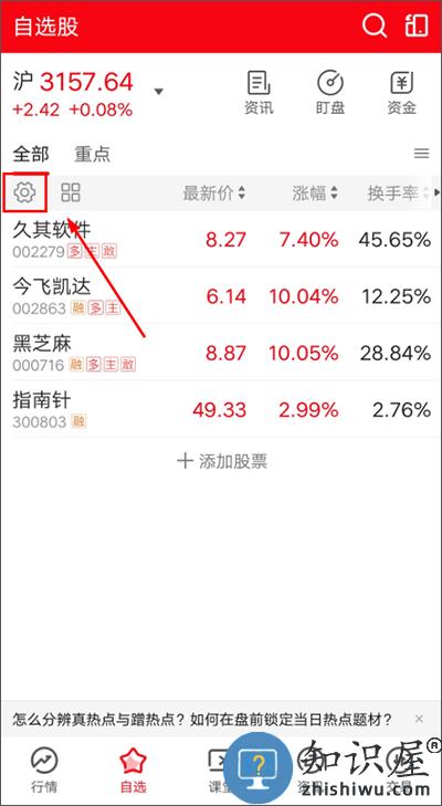 对于【自选股】页面内的股票排序,用户可点击页面内的齿轮图标,进行更改;