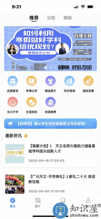“启鸣云校”是一款家校沟通的工具,总共分为四个大的板块,分别是“首页”,“圈子”,“云校”以及“我的”板块。总的来说,本款APP主要是加强家长与学校,家长与家长的沟通,更重要的是全方位了解和提高学生的成绩。