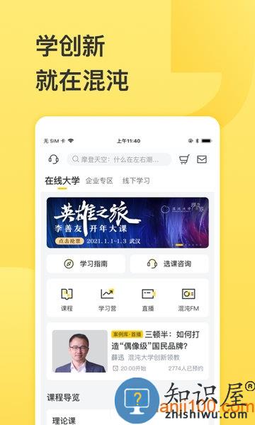 混沌大学软件能够为您提供最全最新的知识普及,海量的名师辅导以及多样的课程选择使软件更具亮点。同时软件还能线上直播教学,有兴趣的朋友快来下载体验吧。