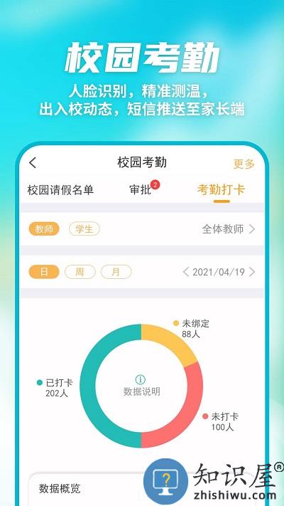 3.校园考勤:人脸识别,精准测温;出入校动态,短信推送至家长端