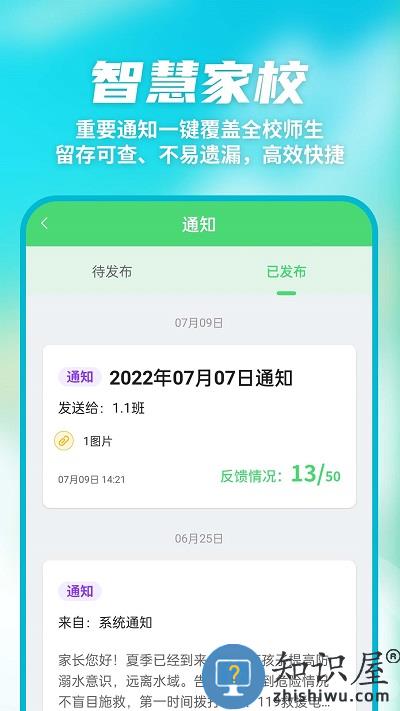 2.智慧家校:重要通知一键覆盖全校师生;留存可查、不易遗漏,高效快捷