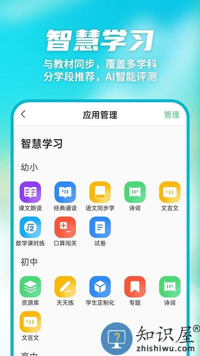 4.智慧学习:与教材同步,覆盖多学科;分学段推荐,AI智能评测