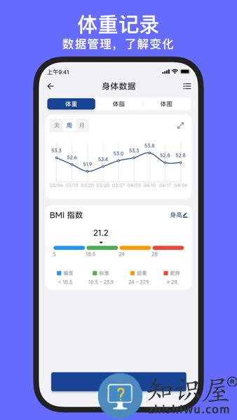身体数据:您可以记录自己的体重、体脂和体围等身体数据。以曲线图的形式展示这些数据,方便您随时查看自己的进步和变化。