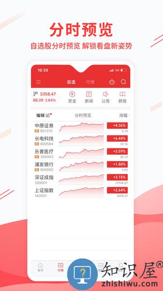 沪深港及新三板等行情秒速更新;提供多组分时及K线,支持均线、复权、缺口、持仓成本线、指标等自主设置