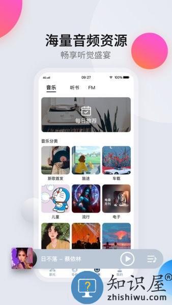 3、悦听畅享听觉盛宴,可同步酷狗音乐、听书、无线广播FM应有尽有,多资源融合,选择性更多;